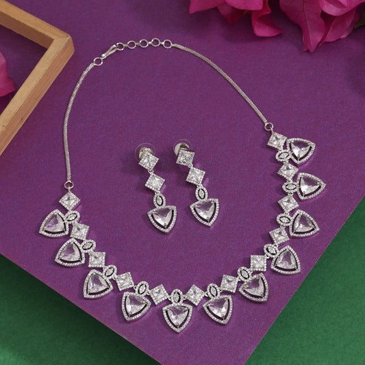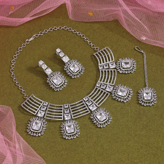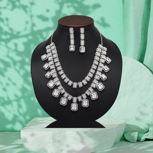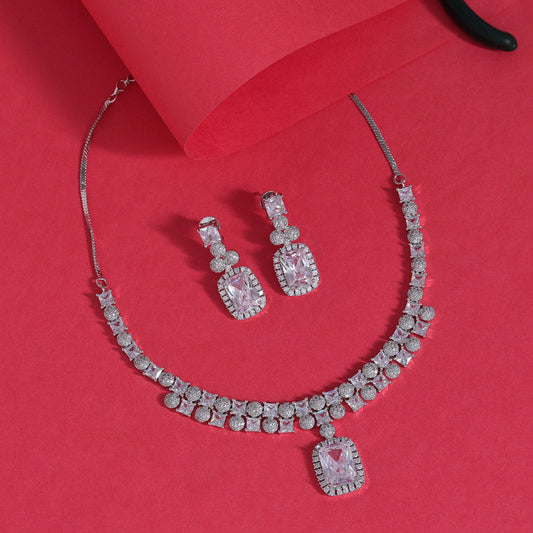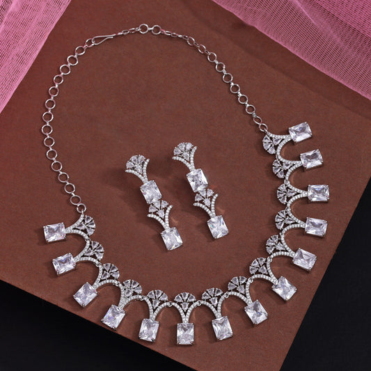 Silver Color American Diamond Necklace Set (CZN1021SLV)