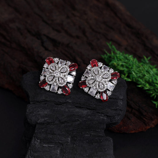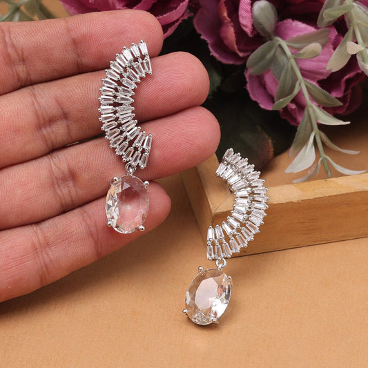 Silver Color American Diamond Earrings For Elegant Party Wear Dressing