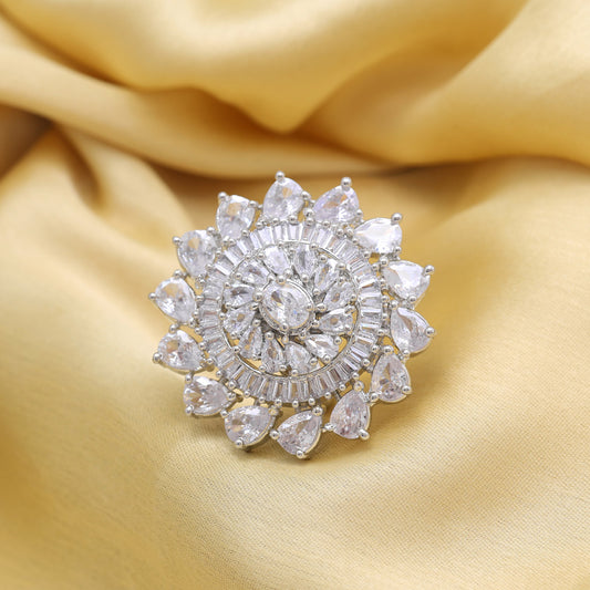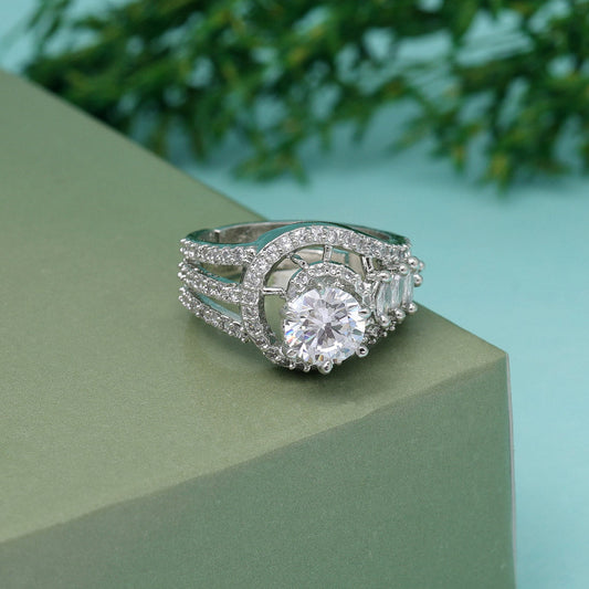 Elegant White Color American Diamond Finger Ring For Classy Outfits