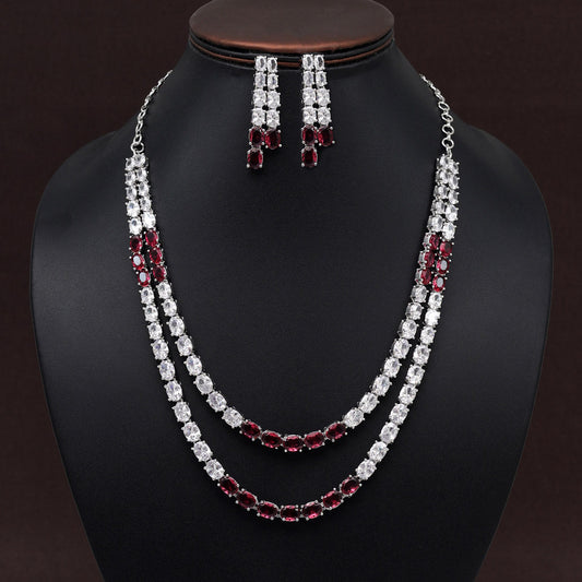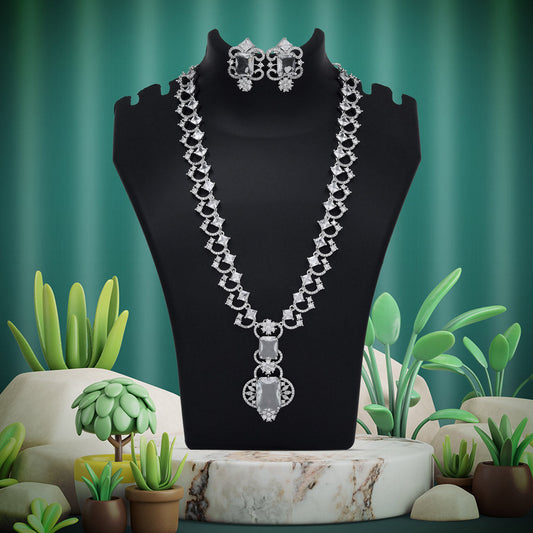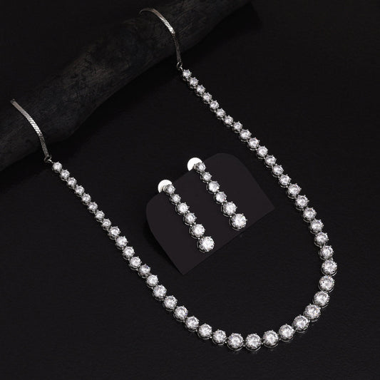 Silver Color American Diamond Necklace Set With High Shine And Smooth Texture