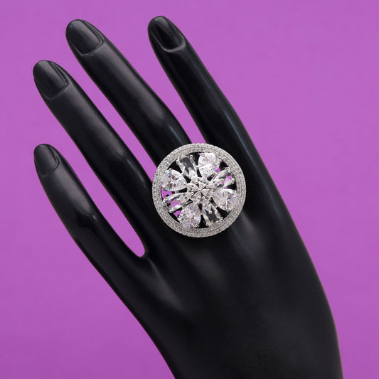 Silver Color American Diamond Finger Ring (ADR598SLV)