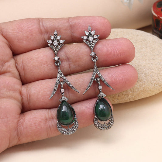 Make heads turn with our dazzling green drop earrings. These pieces are designed to sway gracefully with your every movement, catching the light and drawing attention to your face. The intricate detailing and high-quality materials ensure that these earrings will remain a cherished part of your collection for years to come.