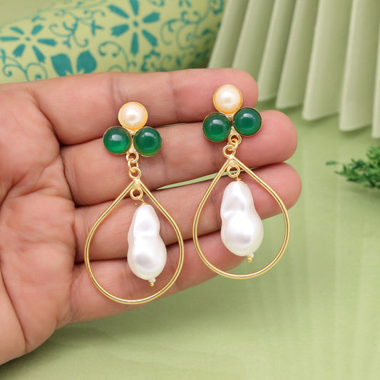 Pista Green Color Monalisa Stone Oxidised Earrings