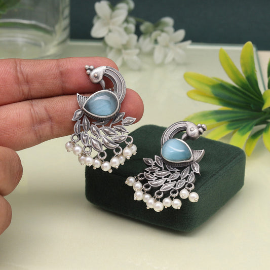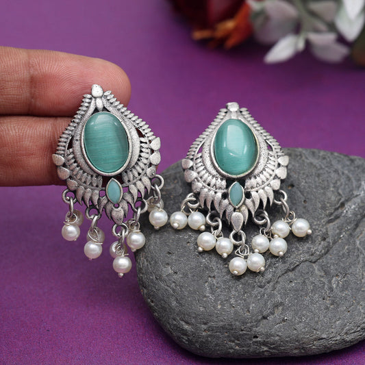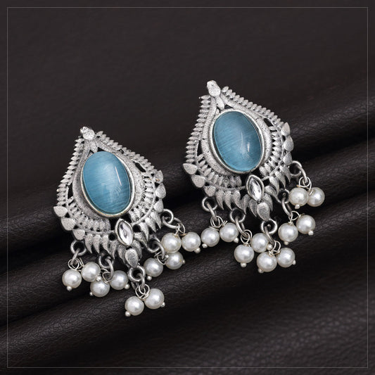 Sky Blue Color Monalisa Stone Oxidised Earrings
