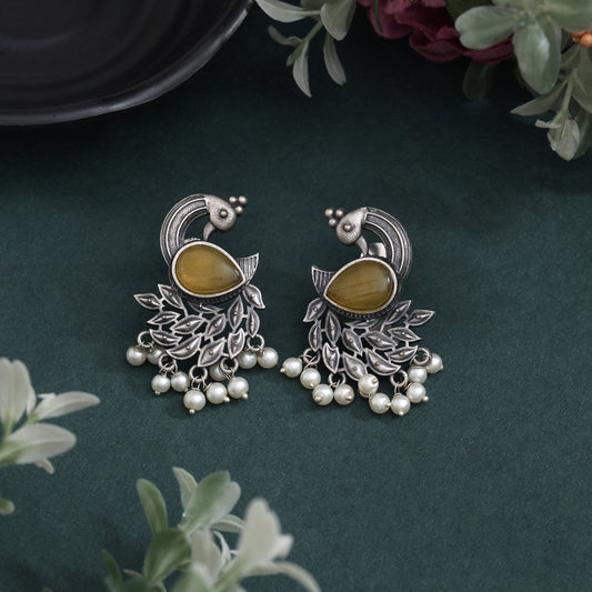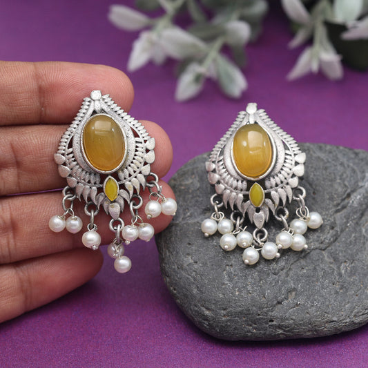 Yellow Color Monalisa Stone Oxidised Earrings (GSE2839YLW)