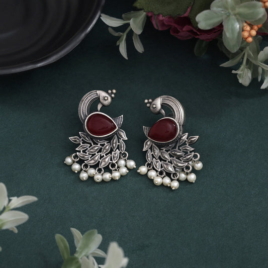 Bold Maroon Color Oxidised Earrings With Stunning Traditional Appeal