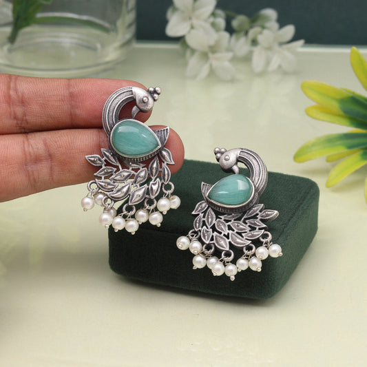 Elegant Rama Green Color Oxidised Earrings With Handcrafted Design