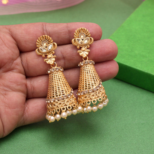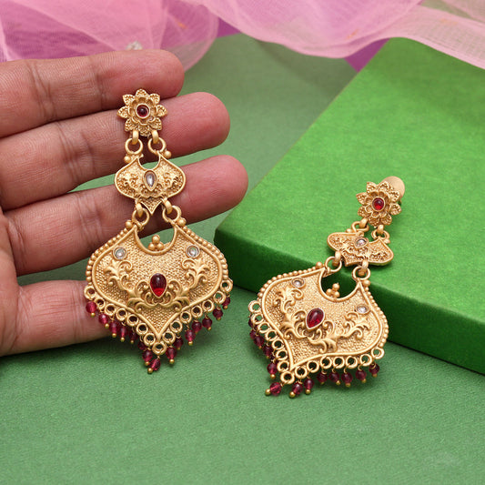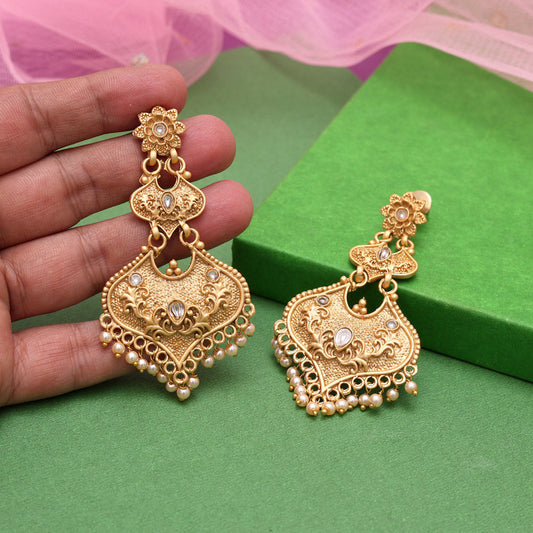 Gold Color Rajwadi Matte Gold Earrings (MGE314GLD)