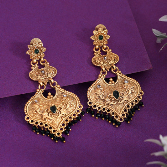 Green Color Rajwadi Matte Gold Earrings (MGE312GRN)