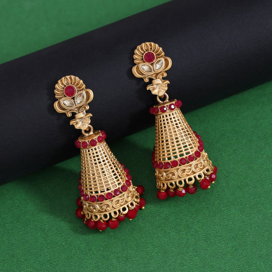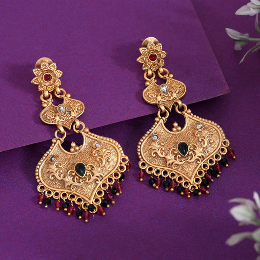 Rani & Green Color Rajwadi Matte Gold Earrings (MGE312RNIGRN)