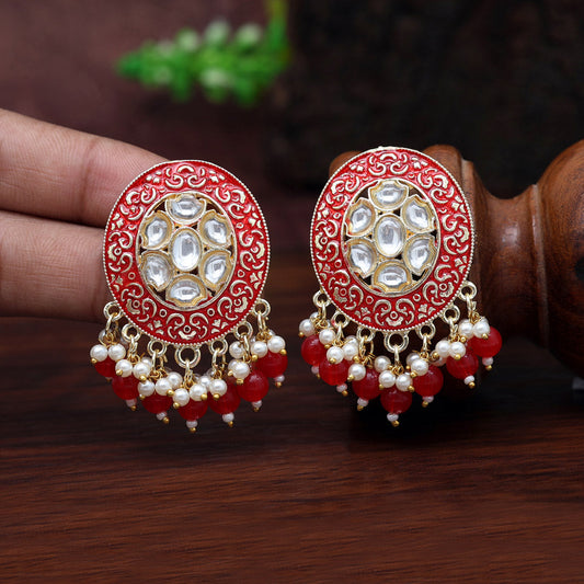 Rani Color Rajwadi Matte Gold Earrings (MGE314RNI)