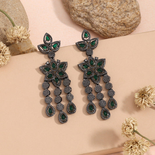 Green Color Oxidised Earrings (GSE2971GRN)