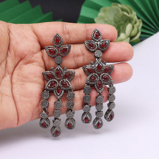 Oxidised Silver Color Antique Drop Design Handcrafted Fashion Earrings
