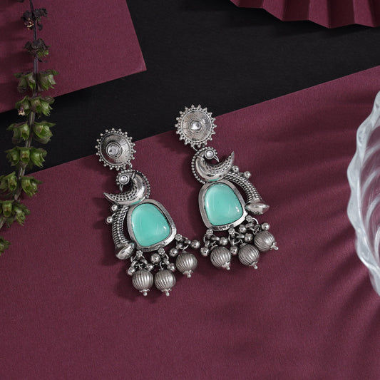 Light Green Color Oxidised Earrings (GSE3081LGRN)