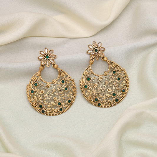 Green Color Rajwadi Matte Gold Earrings