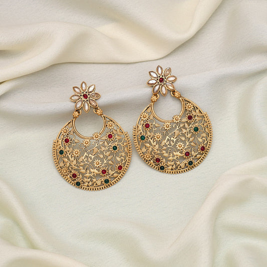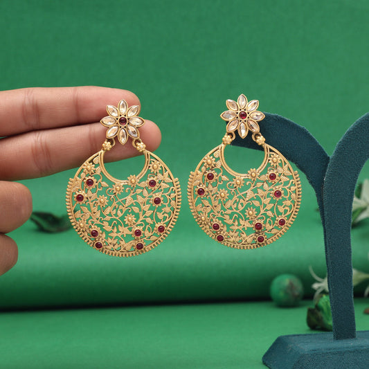 Gold Color Rajwadi Matte Gold Earrings