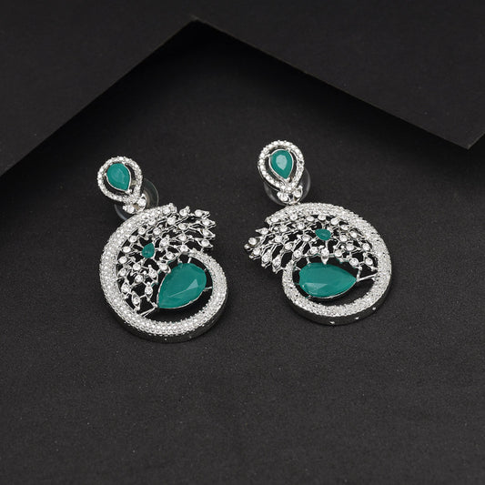 Silver Color Glass Stone Oxidised Earrings