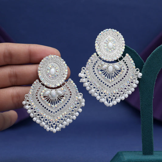White Color Glass Stone Oxidised Earrings