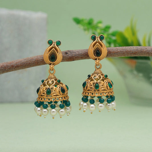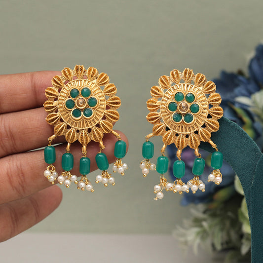 Green Color Rajwadi Matte Gold Earrings (MGE307GRN)