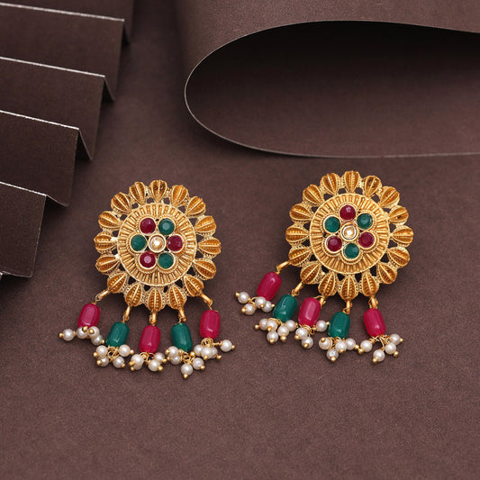 Rani Color Rajwadi Matte Gold Earrings (MGE233RNI)