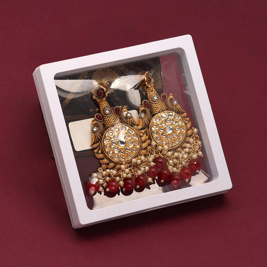 Maroon Color Kundan Earrings (KDE700MRN)