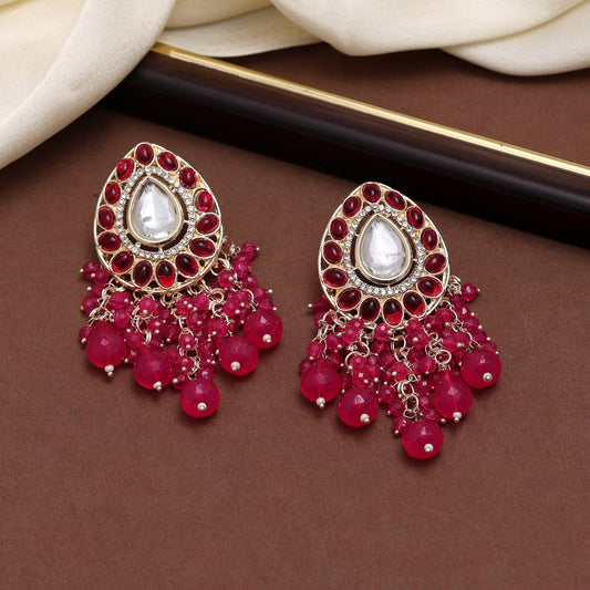 Rani Color Kundan Earrings (KDE857RNI)