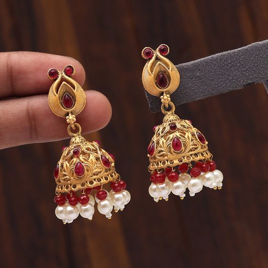 Rani Color Rajwadi Matte Gold Earrings