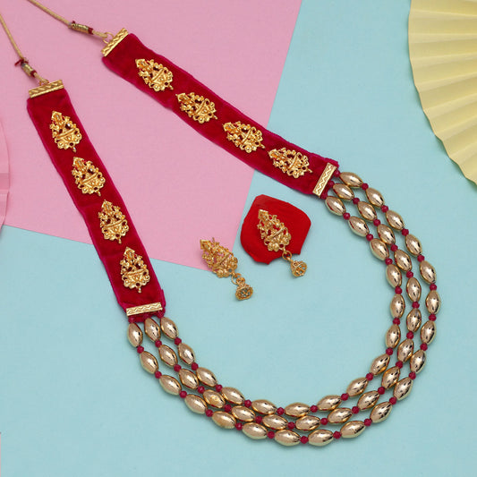 Rani Color Goddess Lakshmi Rajwadi Temple Necklace Set (TPLN600RNI)
