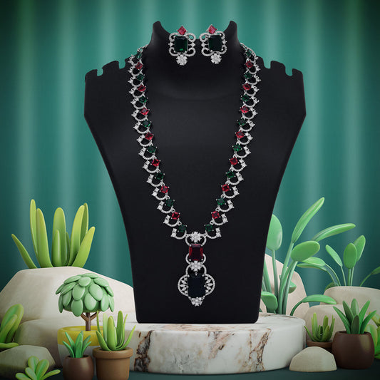 Green & Rani Color American Diamond Necklace Set