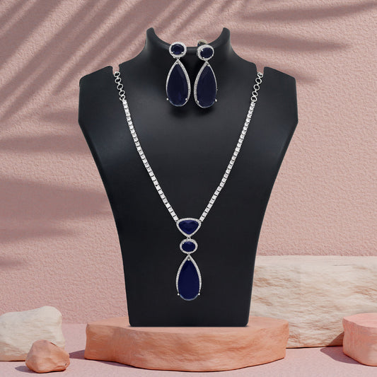 Blue Color American Diamond Necklace Set (CZN1028BLU)