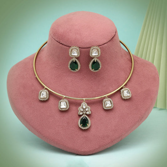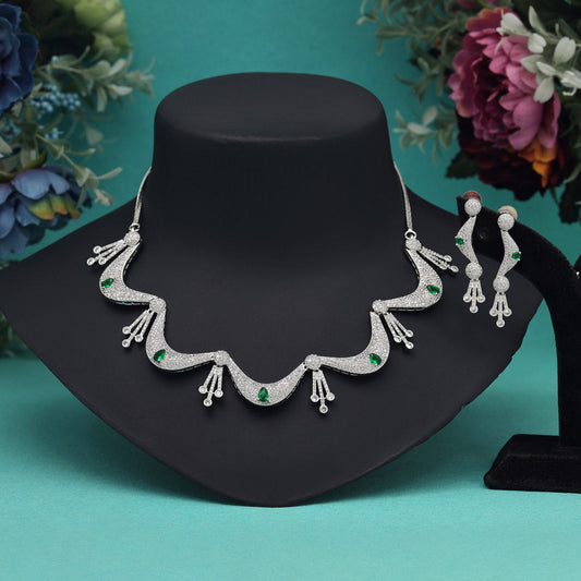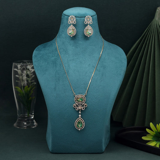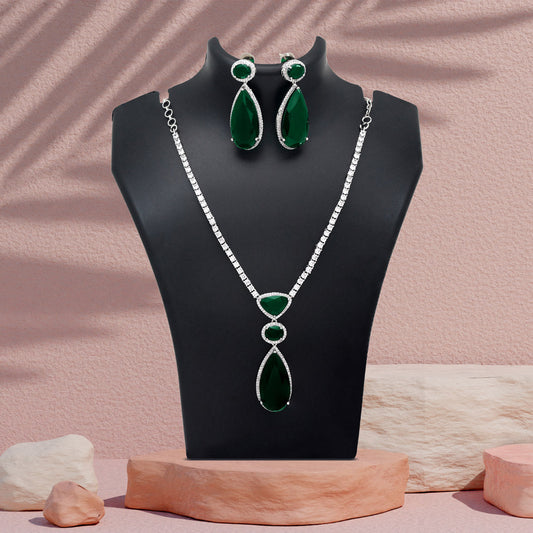 Green Color American Diamond Necklace Set (CZN1028GRN)