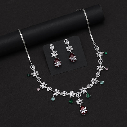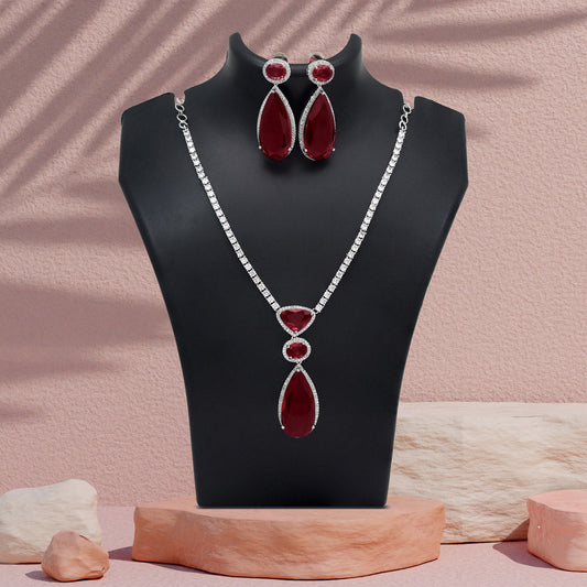 Ruby Color American Diamond Necklace Set (CZN1028RUBY)