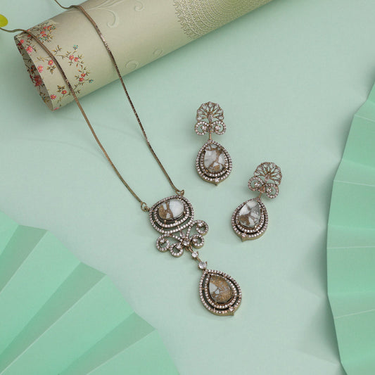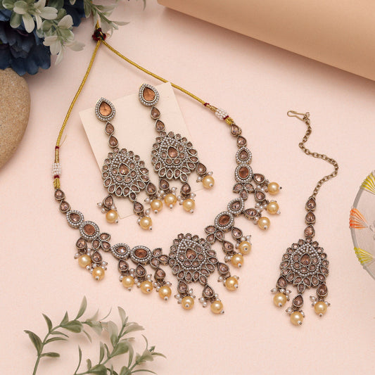 Crystal White Color Kundan Necklace Set