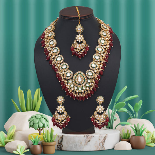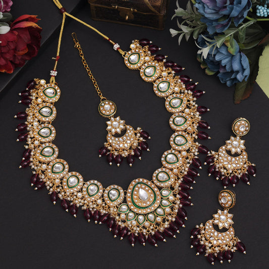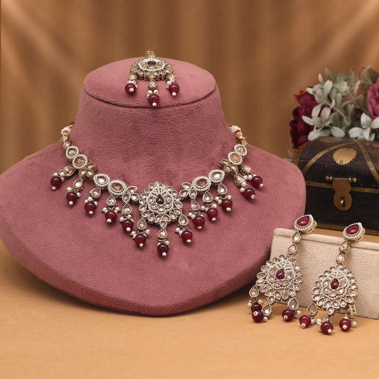 Elegant Maroon Color Kundan Necklace Set