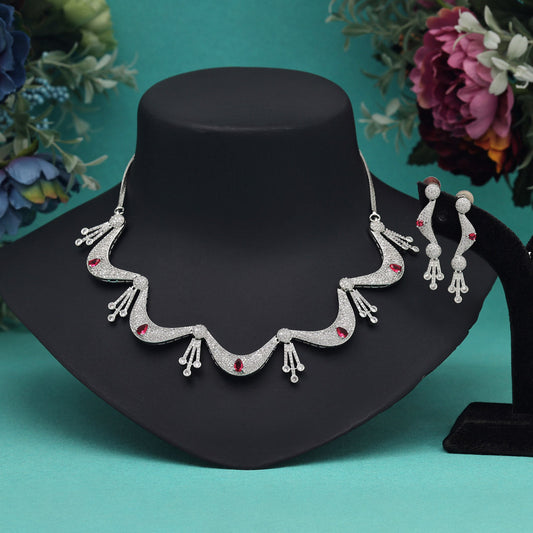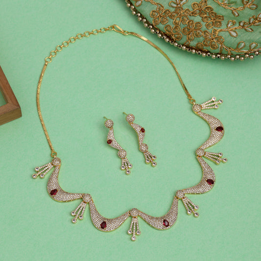 Ruby Color American Diamond Necklace Set