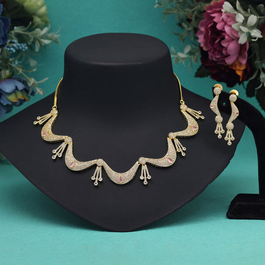 Pink Color American Diamond Necklace Set