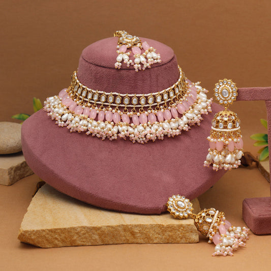 Peach Color Kundan Bridal Choker Necklace Set