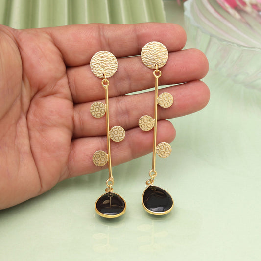 Black Color Monalisa Stone Oxidised Earrings (GSE2834BLK)
