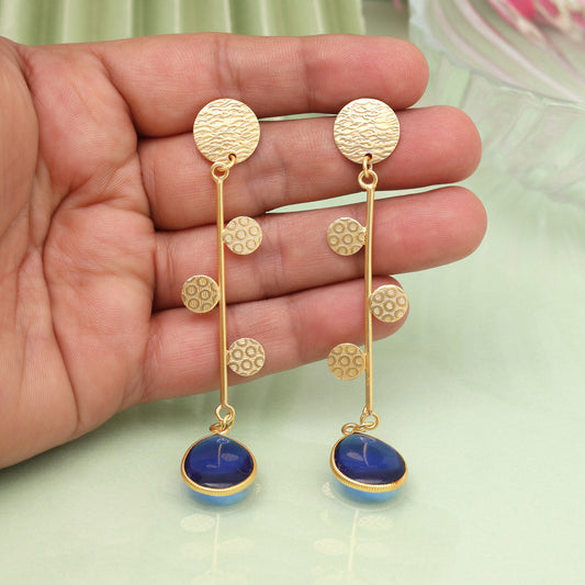 Blue Color Monalisa Stone Oxidised Earrings (GSE2834BLU)