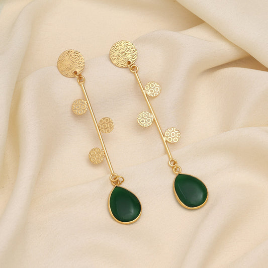 Green Color Monalisa Stone Oxidised Earrings (GSE2834GRN)