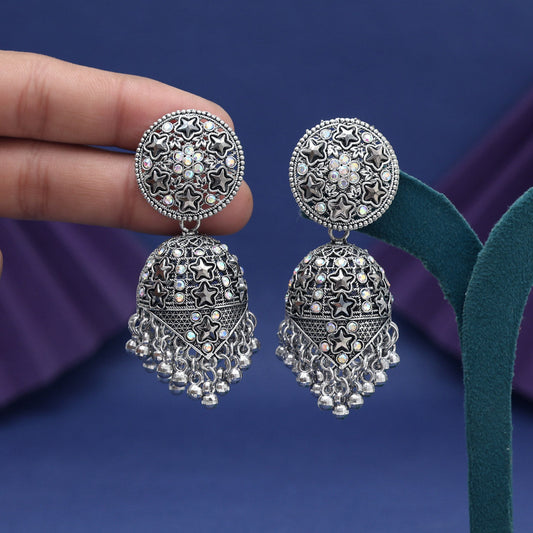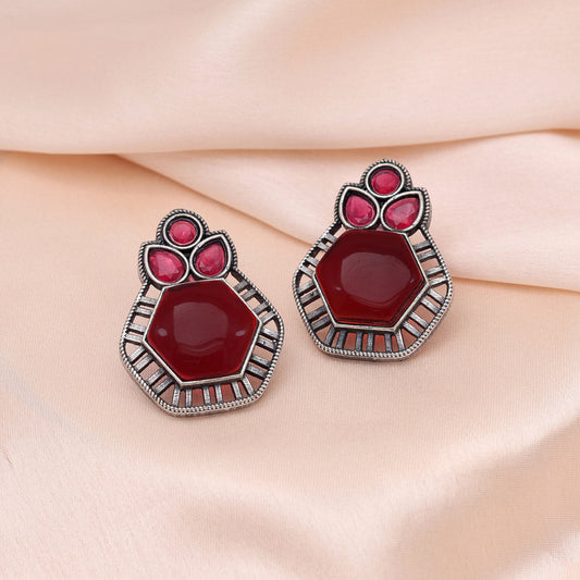 Silver Color Glass Stone Oxidised Earrings