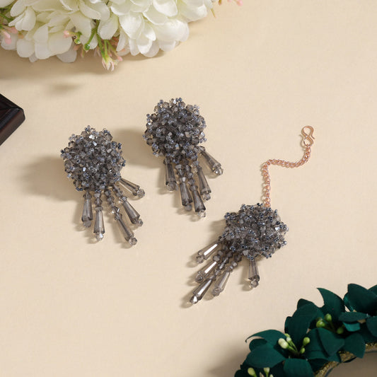 Grey Color Stone Earrings With Maang Tikka (MTKE479GRY)