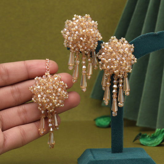 Light Brown Color Stone Earrings With Maang Tikka (MTKE479LBRW)