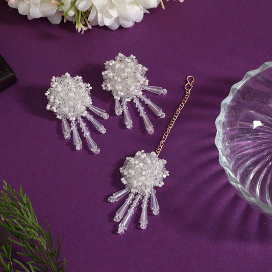 White Color Stone Earrings With Maang Tikka (MTKE479WHT)
