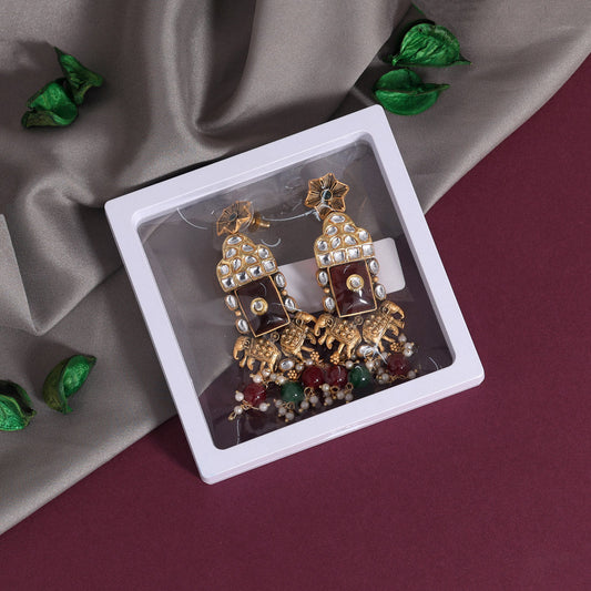 Sold outMaroon & Green Color Kundan Earrings