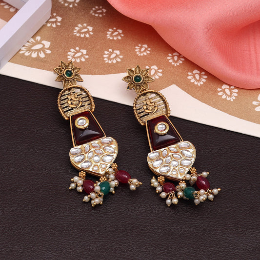 Maroon & Green Color Kundan Earrings (KDE788MG)