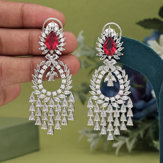 Red Color American Diamond Necklace Set (CZN1019RED)