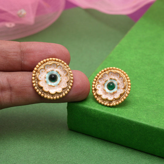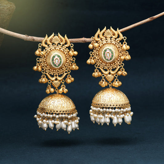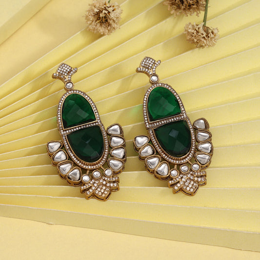 Gold Color Handmade In Jaipur On Brass Metal With Moissanite Kundan Amrapali Earrings (AMPE443GLD)
