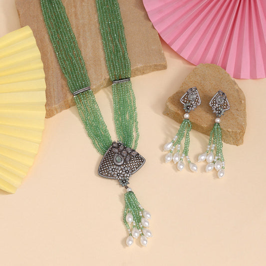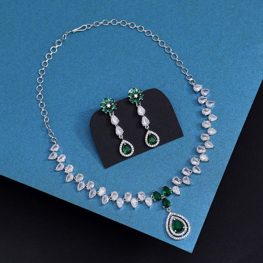 Green Color American Diamond Necklace Set (CZN1019GRN)
