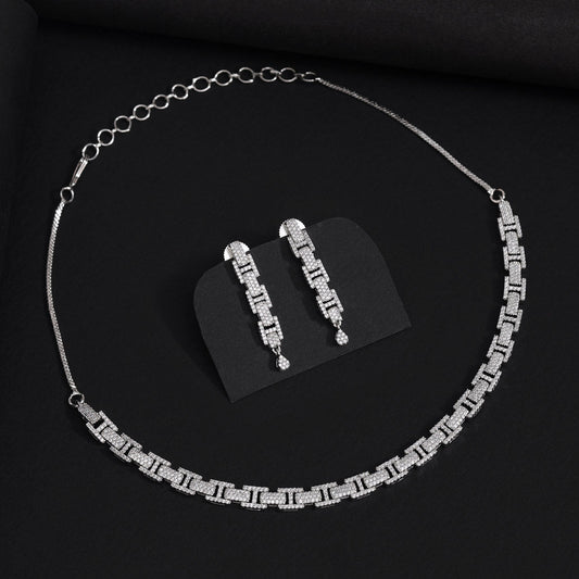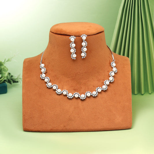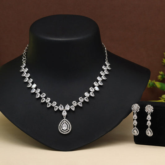 Silver Color American Diamond Necklace Set (CZN964SLV)